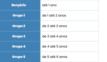 A Monet se organiza em grupos por faixa etária, que correspondem, aproximadamente, às possibilidades de aprendizagem e às características das crianças, conforme indicado acima